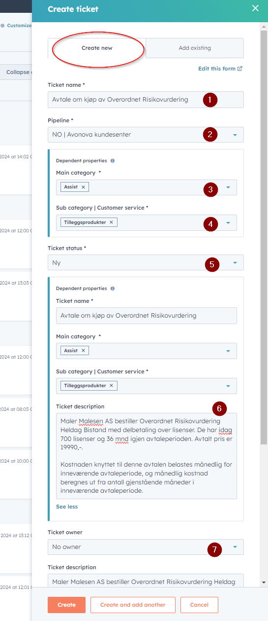 - OBS: Ticket opprettes på kontaktperson som har signaturrett i bedriften, da det er denne personen som må signere avtalen som sendes ut i etterkant.