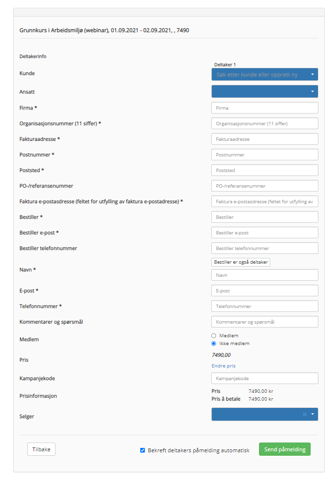 Hvordan legge inn en kunde på ett kurs som er gjennomført?